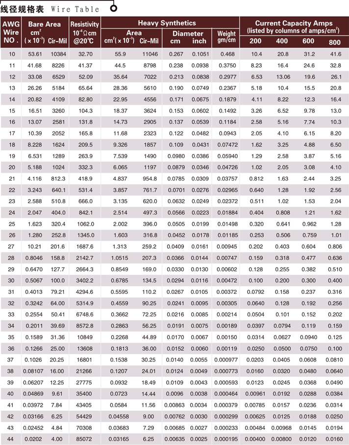 線徑規(guī)格表